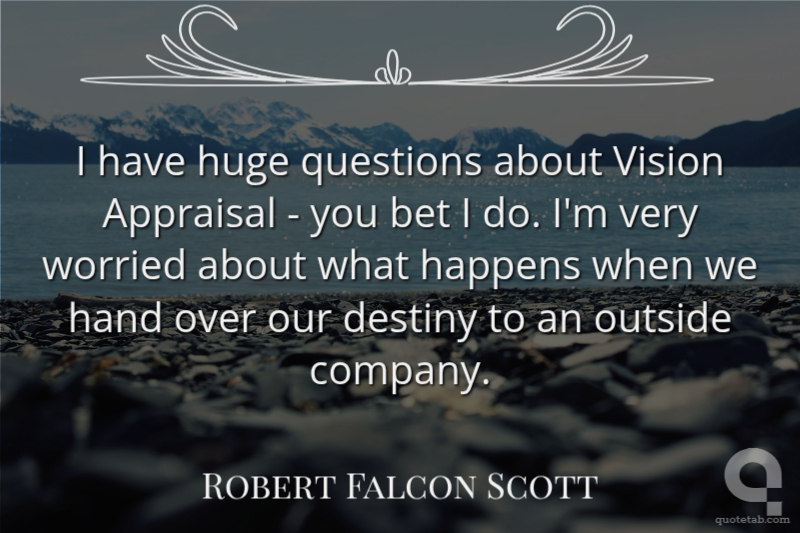 I have huge questions about Vision Appraisal - you bet I do. I'm very worried about what happens when we hand over our destiny to an outside company.