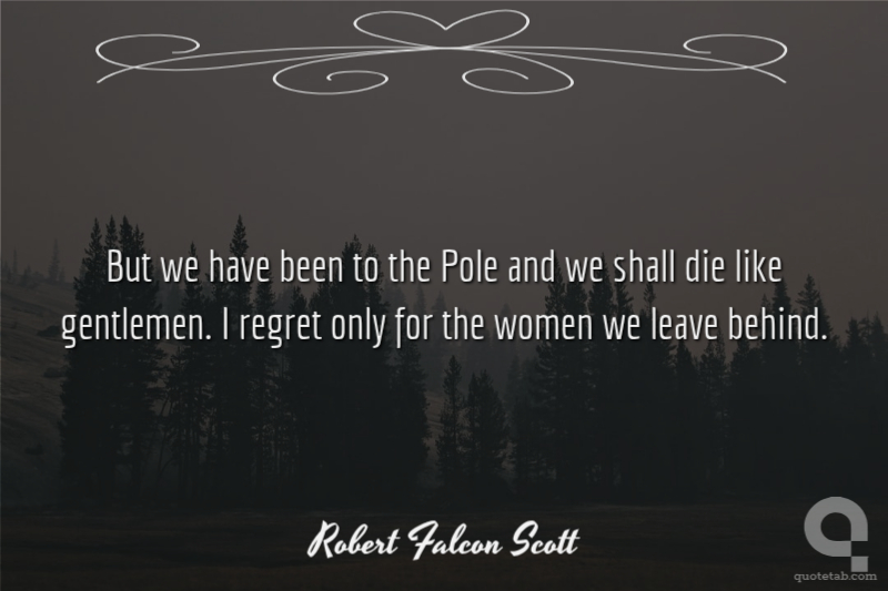 But we have been to the Pole and we shall die like gentlemen. I regret only for the women we leave behind.