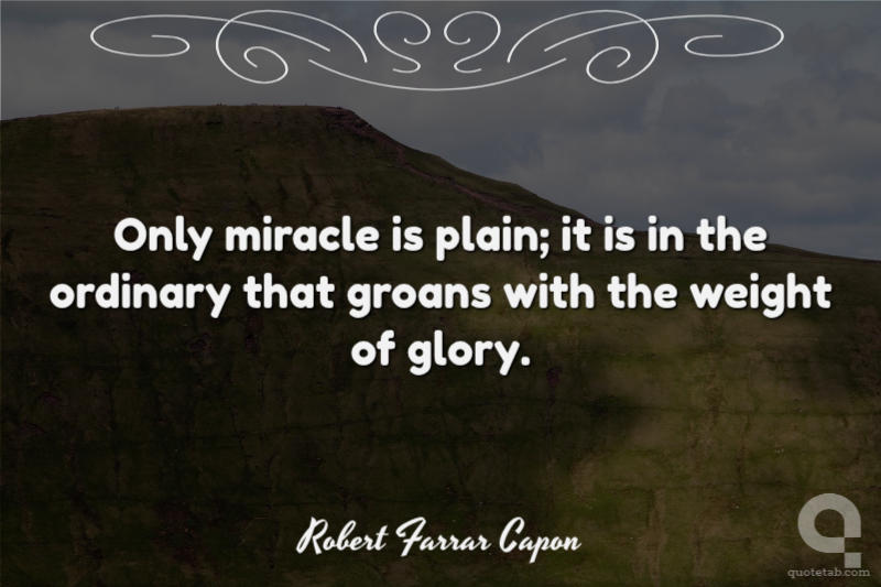 Only miracle is plain; it is in the ordinary that groans with the weight of glory.
