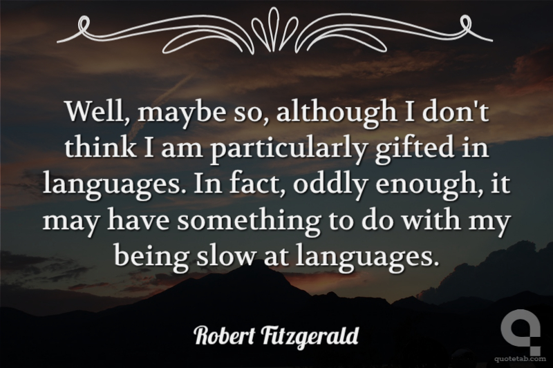 Well, maybe so, although I don't think I am particularly gifted in languages. In fact, oddly enough, it may have something to do with my being slow at languages.