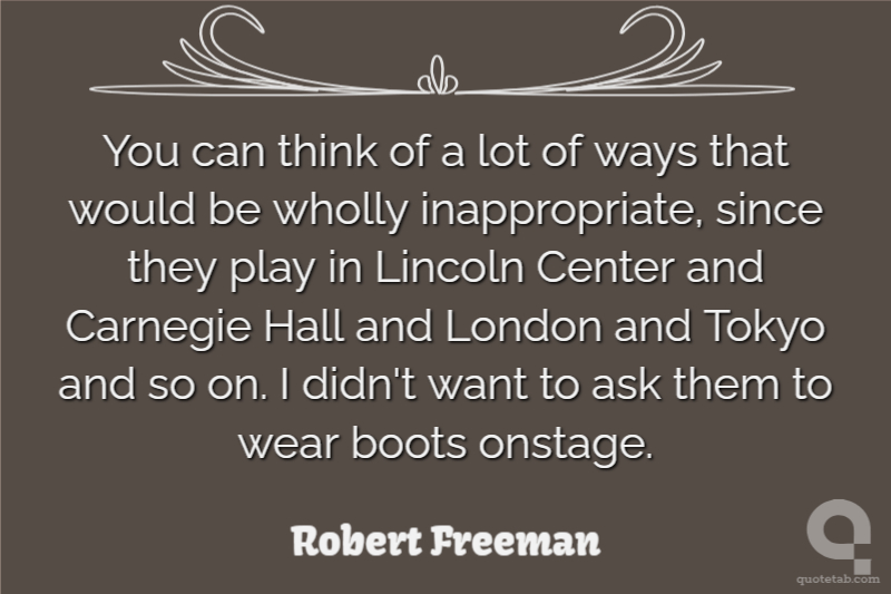 You can think of a lot of ways that would be wholly inappropriate, since they play in Lincoln Center and Carnegie Hall and London and Tokyo and so on. I didn't want to ask them to wear boots onstage.