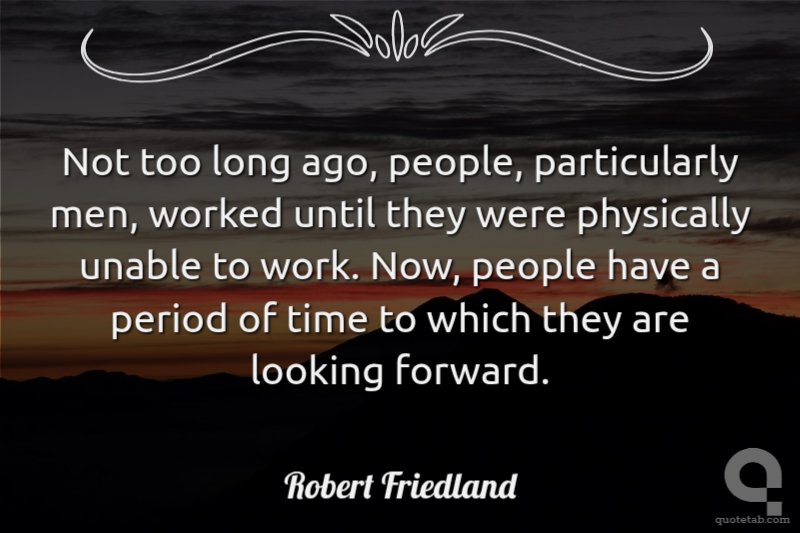 Not too long ago, people, particularly men, worked until they were physically unable to work. Now, people have a period of time to which they are looking forward.