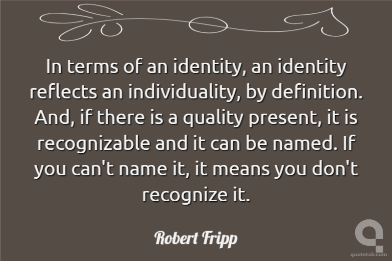 In terms of an identity, an identity reflects an individuality, by definition. And, if there is a quality present, it is recognizable and it can be named. If you can't name it, it means you don't recognize it.