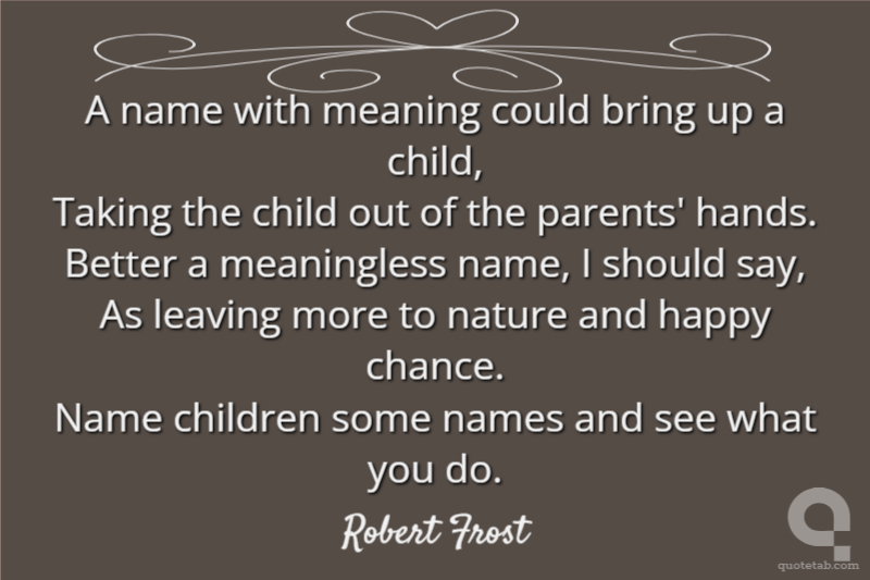 A name with meaning could bring up a child, Taking the child out of the parents' hands. Better a meaningless name, I should say, As leaving more to nature and happy chance. Name children some names and see what you do.