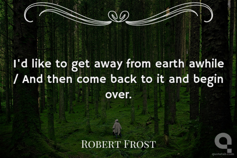 I'd like to get away from earth awhile / And then come back to it and begin over.