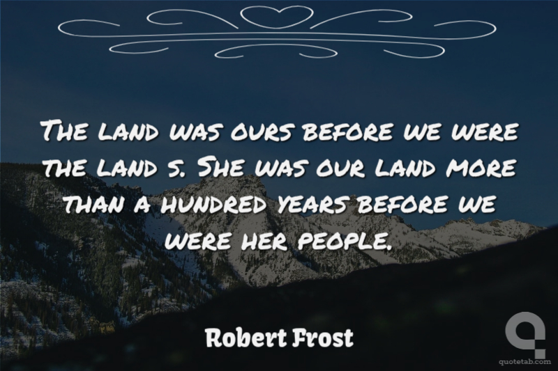 The land was ours before we were the land's. She was our land more than a hundred years Before we were her people.
