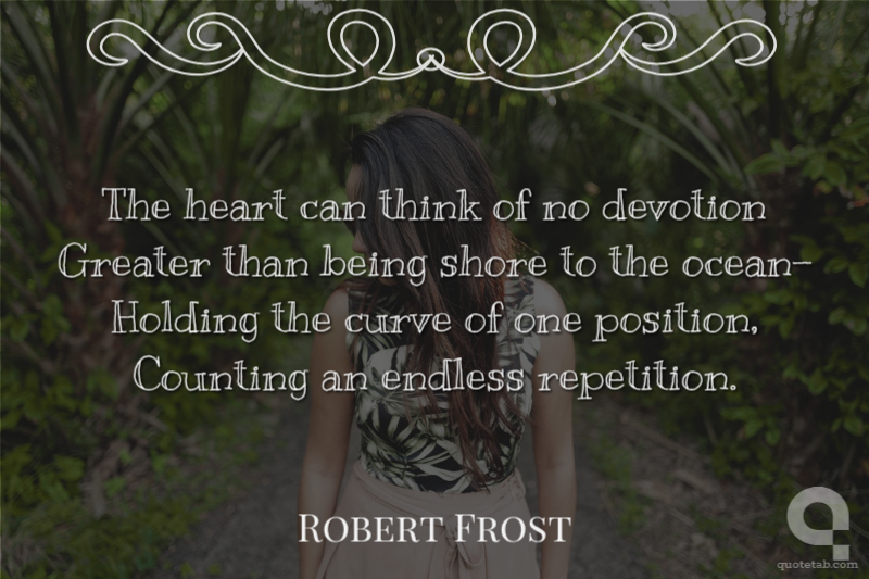 The heart can think of no devotion Greater than being shore to the ocean- Holding the curve of one position, Counting an endless repetition.