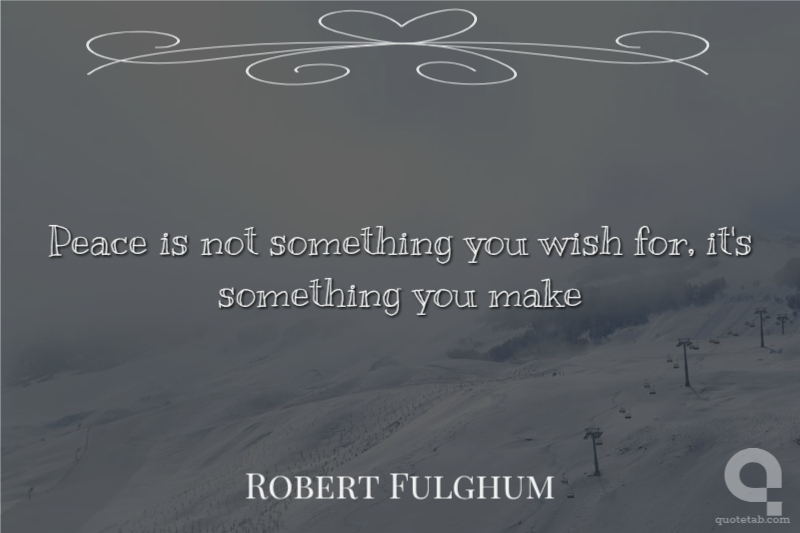 Peace is not something you wish for; It's something you make, Something you do, Something you are, And something you give away.