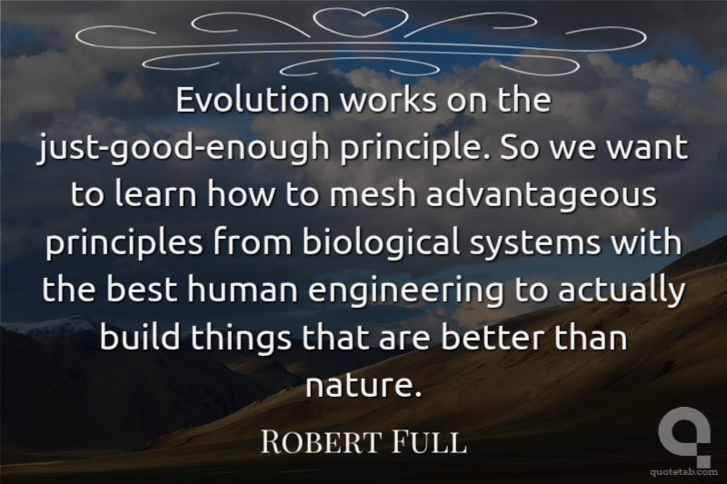 Evolution works on the just-good-enough principle. So we want to learn how to mesh advantageous principles from biological systems with the best human engineering to actually build things that are better than nature.