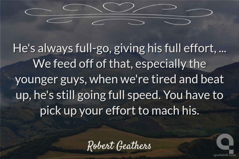 He's always full-go, giving his full effort, ... We feed off of that, especially the younger guys, when we're tired and beat up, he's still going full speed. You have to pick up your effort to mach his.