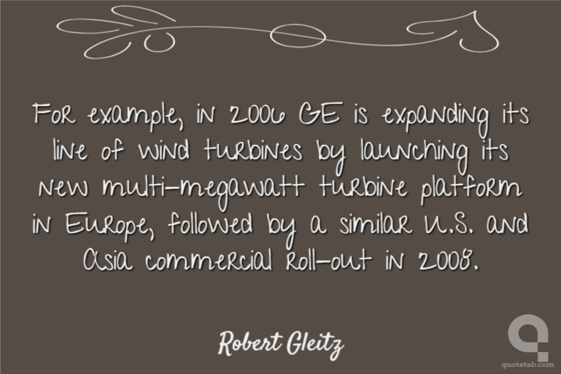 For example, in 2006 GE is expanding its line of wind turbines by launching its new multi-megawatt turbine platform in Europe, followed by a similar U.S. and Asia commercial roll-out in 2008.