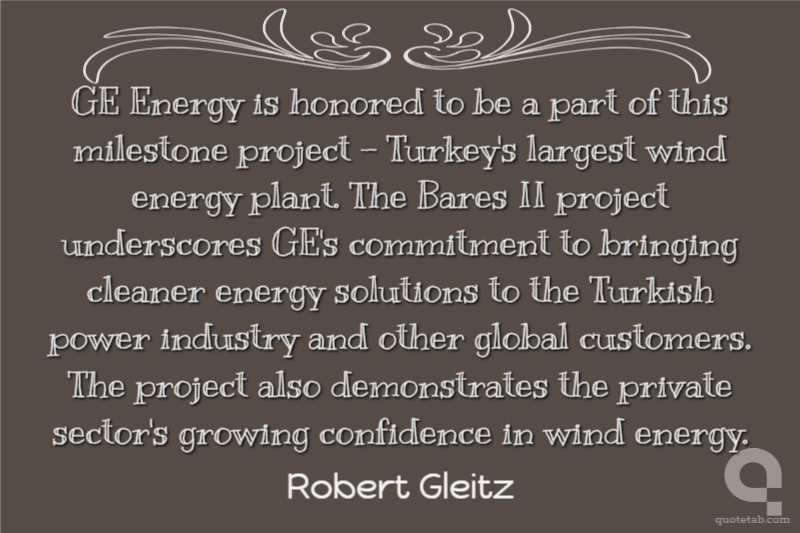 GE Energy is honored to be a part of this milestone project - Turkey's largest wind energy plant. The Bares II project underscores GE's commitment to bringing cleaner energy solutions to the Turkish power industry and other global customers. The project also demonstrates the private sector's growing confidence in wind energy.