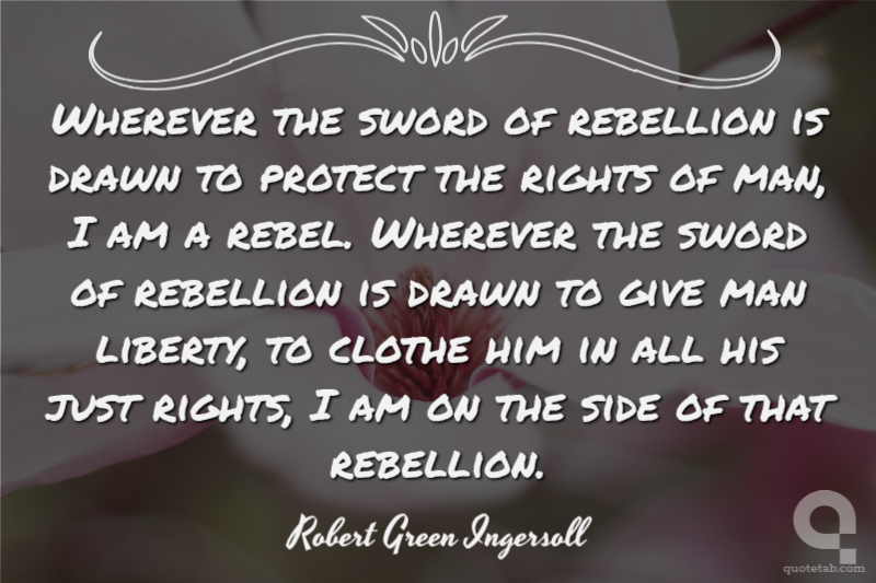 Wherever the sword of rebellion is drawn to protect the rights of man, I am a rebel. Wherever the sword of rebellion is drawn to give man liberty, to clothe him in all his just rights, I am on the side of that rebellion.