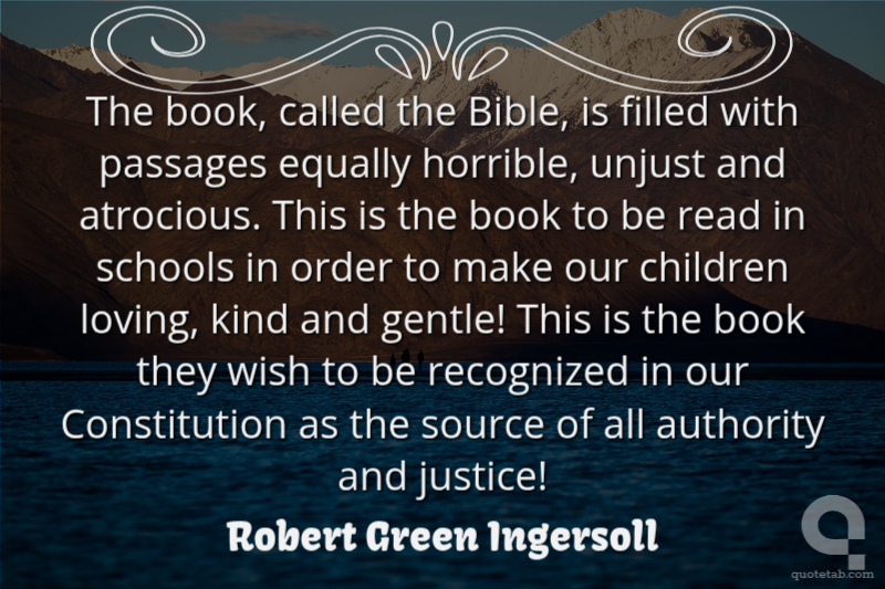 The book, called the Bible, is filled with passages equally horrible, unjust and atrocious. This is the book to be read in schools in order to make our children loving, kind and gentle! This is the book they wish to be recognized in our Constitution as the source of all authority and justice!