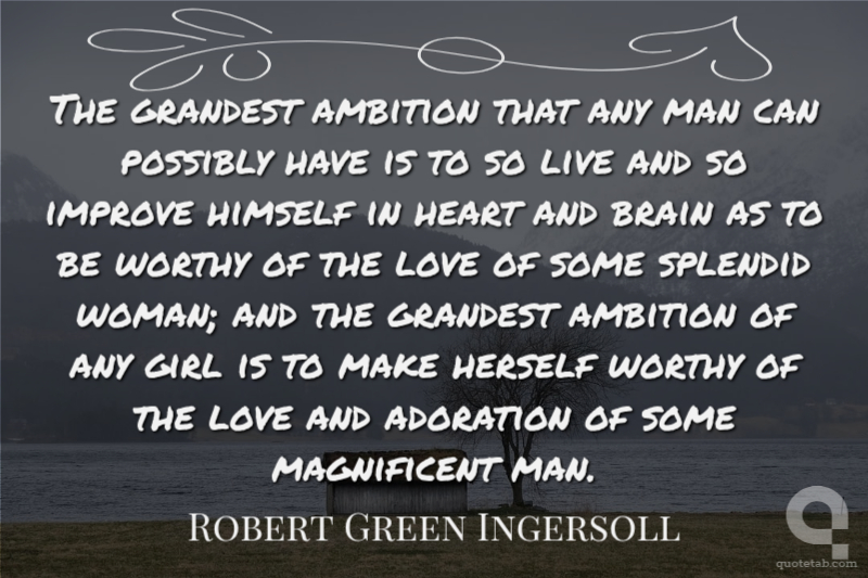 The grandest ambition that any man can possibly have is to so live and so improve himself in heart and brain as to be worthy of the love of some splendid woman; and the grandest ambition of any girl is to make herself worthy of the love and adoration of some magnificent man.