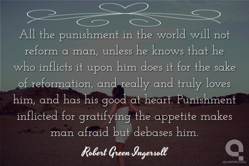 All the punishment in the world will not reform a man, unless he knows that he who inflicts it upon him does it for the sake of reformation, and really and truly loves him, and has his good at heart. Punishment inflicted for gratifying the appetite makes man afraid but debases him.