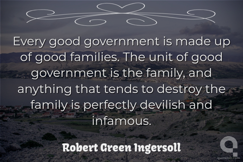 Every good government is made up of good families. The unit of good government is the family, and anything that tends to destroy the family is perfectly devilish and infamous.