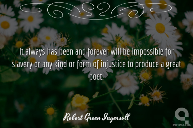 It always has been and forever will be impossible for slavery or any kind or form of injustice to produce a great poet.