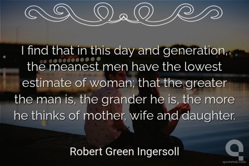 I find that in this day and generation, the meanest men have the lowest estimate of woman; that the greater the man is, the grander he is, the more he thinks of mother, wife and daughter.