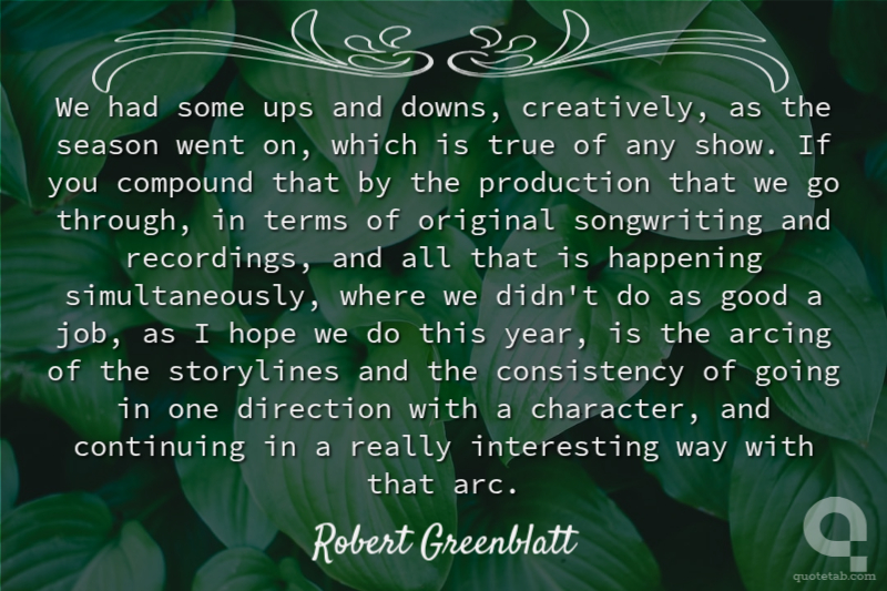 We had some ups and downs, creatively, as the season went on, which is true of any show. If you compound that by the production that we go through, in terms of original songwriting and recordings, and all that is happening simultaneously, where we didn't do as good a job, as I hope we do this year, is the arcing of the storylines and the consistency of going in one direction with a character, and continuing in a really interesting way with that arc.