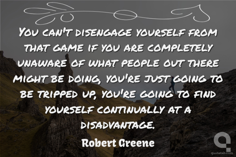 You can't disengage yourself from that game if you are completely unaware of what people out there might be doing, you're just going to be tripped up, you're going to find yourself continually at a disadvantage.