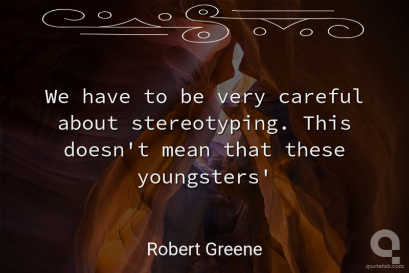 We have to be very careful about stereotyping. This doesn't mean that these youngsters'