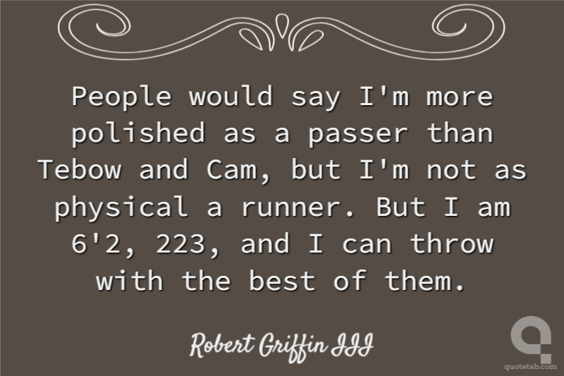 People would say I'm more polished as a passer than Tebow and Cam, but I'm not as physical a runner. But I am 6'2, 223, and I can throw with the best of them.