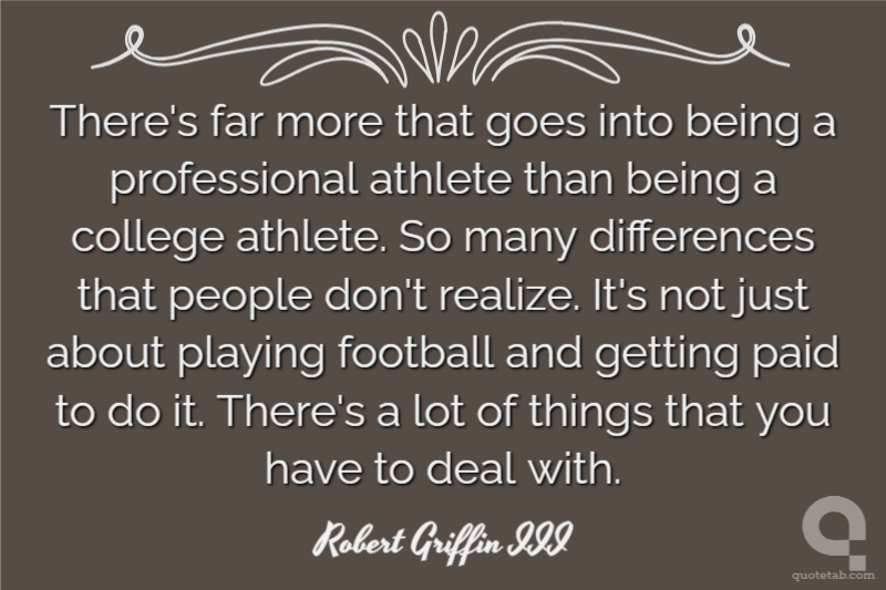 There's far more that goes into being a professional athlete than being a college athlete. So many differences that people don't realize. It's not just about playing football and getting paid to do it. There's a lot of things that you have to deal with.