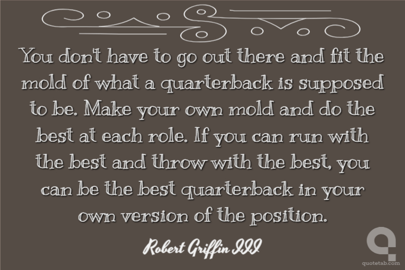 You don't have to go out there and fit the mold of what a quarterback is supposed to be. Make your own mold and do the best at each role. If you can run with the best and throw with the best, you can be the best quarterback in your own version of the position.