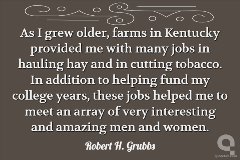As I grew older, farms in Kentucky provided me with many jobs in hauling hay and in cutting tobacco. In addition to helping fund my college years, these jobs helped me to meet an array of very interesting and amazing men and women.
