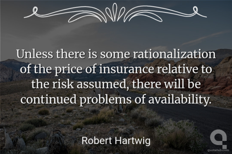Unless there is some rationalization of the price of insurance relative to the risk assumed, there will be continued problems of availability.
