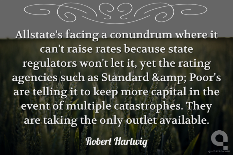 Allstate's facing a conundrum where it can't raise rates because state regulators won't let it, yet the rating agencies such as Standard & Poor's are telling it to keep more capital in the event of multiple catastrophes. They are taking the only outlet available.