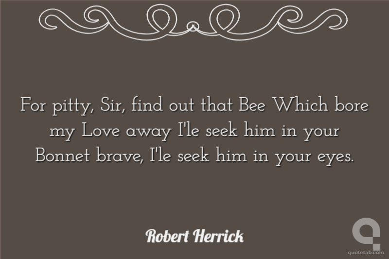 For pitty, Sir, find out that Bee Which bore my Love away I'le seek him in your Bonnet brave, I'le seek him in your eyes.