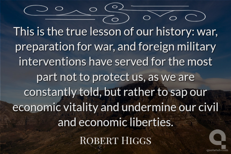 This is the true lesson of our history: war, preparation for war, and foreign military interventions have served for the most part not to protect us, as we are constantly told, but rather to sap our economic vitality and undermine our civil and economic liberties.