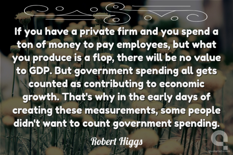 If you have a private firm and you spend a ton of money to pay employees, but what you produce is a flop, there will be no value to GDP. But government spending all gets counted as contributing to economic growth. That's why in the early days of creating these measurements, some people didn't want to count government spending.