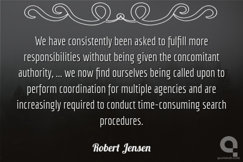 We have consistently been asked to fulfill more responsibilities without being given the concomitant authority, ... we now find ourselves being called upon to perform coordination for multiple agencies and are increasingly required to conduct time-consuming search procedures.