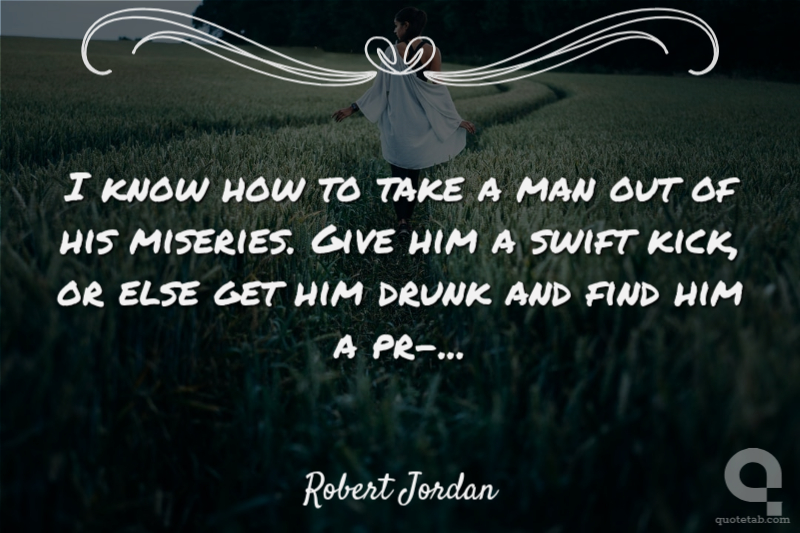 I know how to take a man out of his miseries. Give him a swift kick, or else get him drunk and find him a pr-...