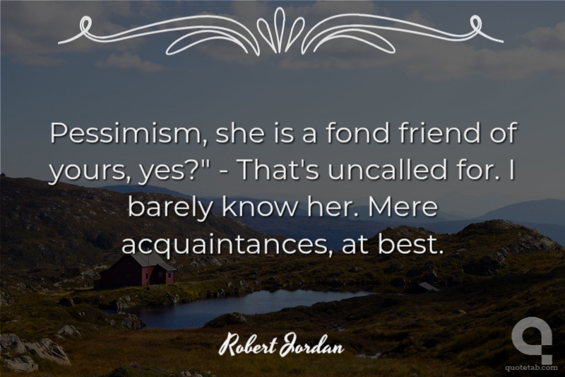 Pessimism, she is a fond friend of yours, yes?" - That's uncalled for. I barely know her. Mere acquaintances, at best.