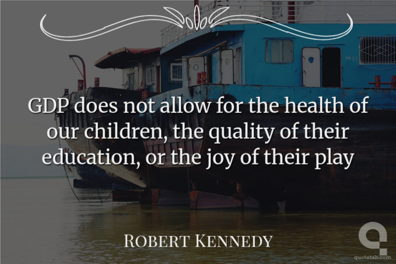 ...the gross national product does not allow for the health of our children, the quality of their education or the joy of their play. It does not include the beauty of our poetry or the strength of our marriages, the intelligence of our public debate or the integrity of our public officials. It measures neither our wit nor our courage, neither our wisdom nor our learning, neither our compassion nor our devotion to our country, it measures everything in short, except that which makes life worthwhile.