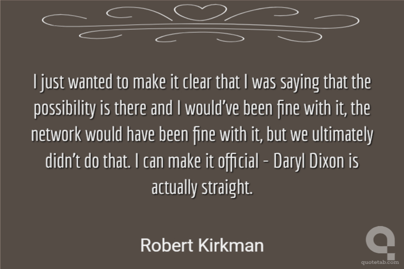 I just wanted to make it clear that I was saying that the possibility is there and I would've been fine with it, the network would have been fine with it, but we ultimately didn't do that. I can make it official - Daryl Dixon is actually straight.