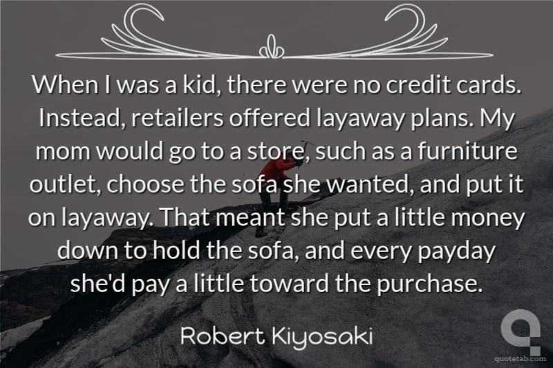 When I was a kid, there were no credit cards. Instead, retailers offered layaway plans. My mom would go to a store, such as a furniture outlet, choose the sofa she wanted, and put it on layaway. That meant she put a little money down to hold the sofa, and every payday she'd pay a little toward the purchase.