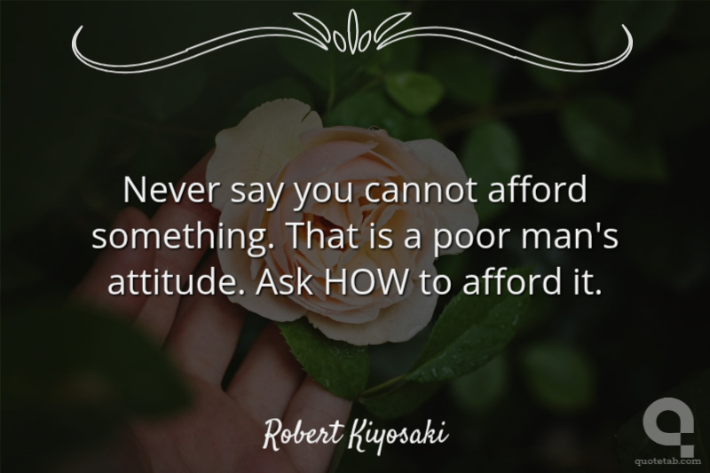 Never say you cannot afford something. That is a poor man's attitude. Ask HOW to afford it.