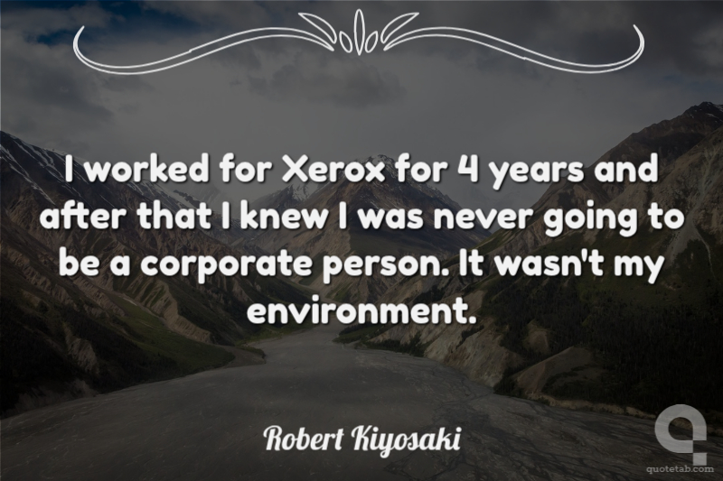 I worked for Xerox for 4 years and after that I knew I was never going to be a corporate person. It wasn't my environment.