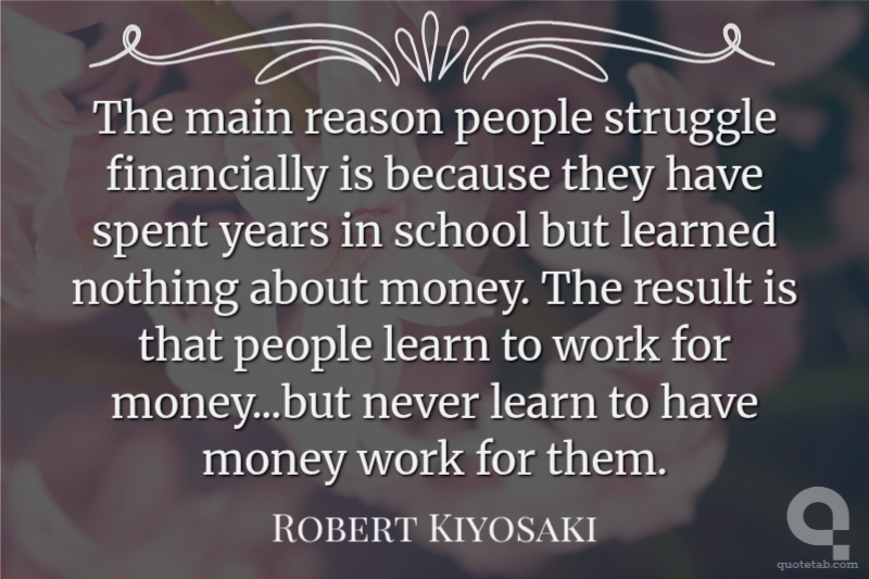 The main reason people struggle financially is because they have spent years in school but learned nothing about money. The result is that people learn to work for money...but never learn to have money work for them.