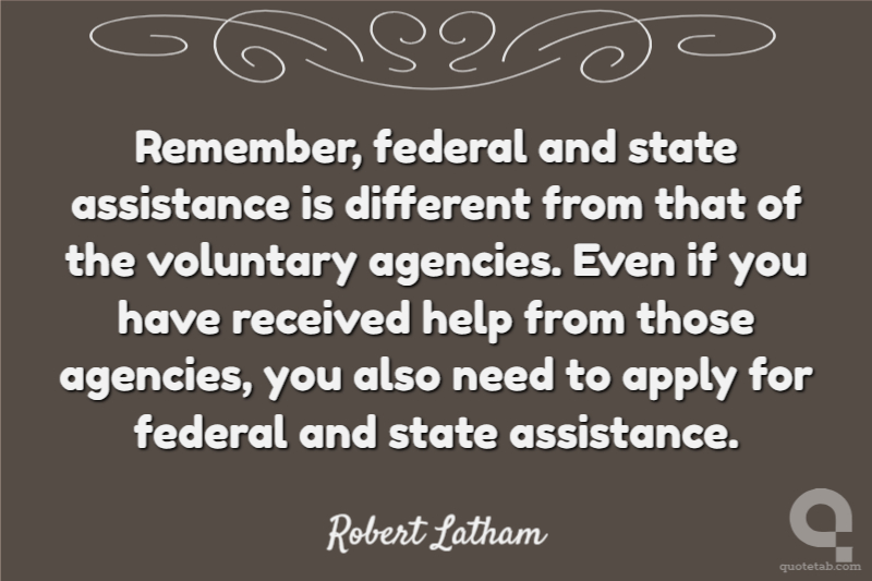 Remember, federal and state assistance is different from that of the voluntary agencies. Even if you have received help from those agencies, you also need to apply for federal and state assistance.