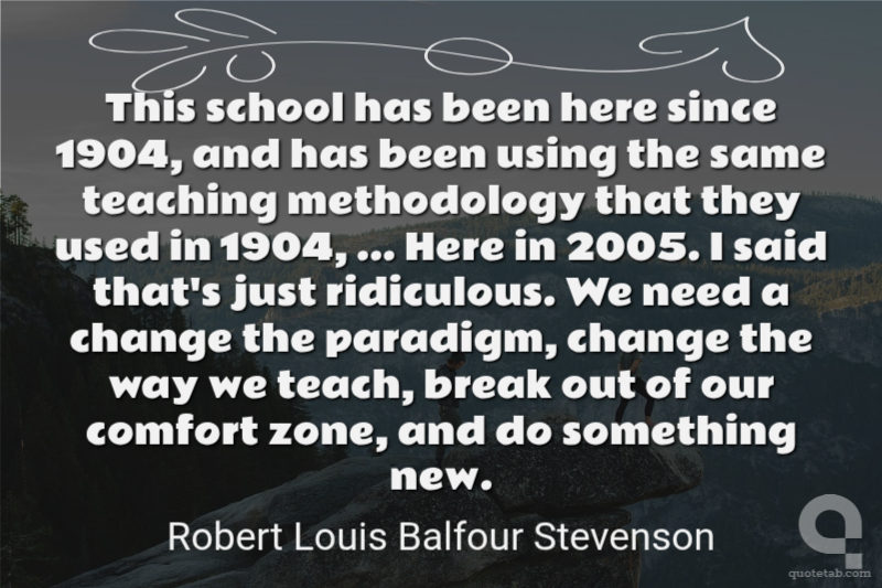 This school has been here since 1904, and has been using the same teaching methodology that they used in 1904, ... Here in 2005. I said that's just ridiculous. We need a change the paradigm, change the way we teach, break out of our comfort zone, and do something new.