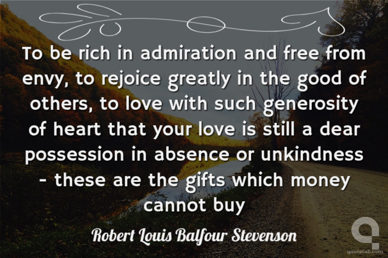 To be rich in admiration and free from envy, to rejoice greatly in the good of others, to love with such generosity of heart that your love is still a dear possession in absence or unkindness - these are the gifts which money cannot buy