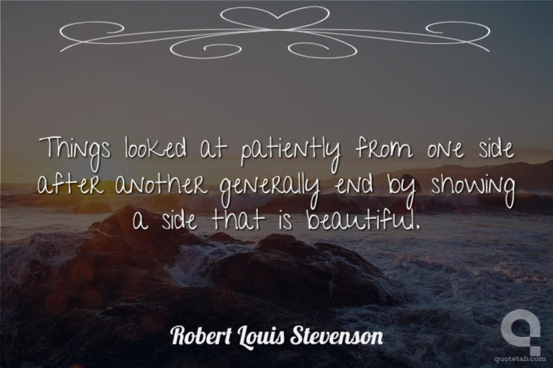 Things looked at patiently from one side after another generally end by showing a side that is beautiful.