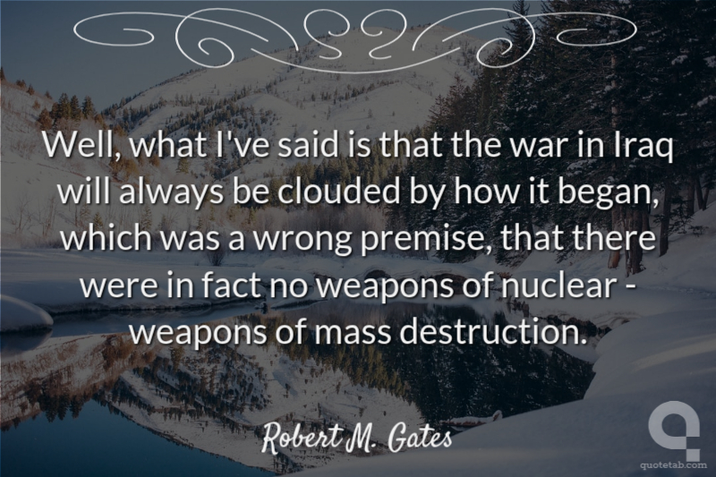 Well, what I've said is that the war in Iraq will always be clouded by how it began, which was a wrong premise, that there were in fact no weapons of nuclear - weapons of mass destruction.