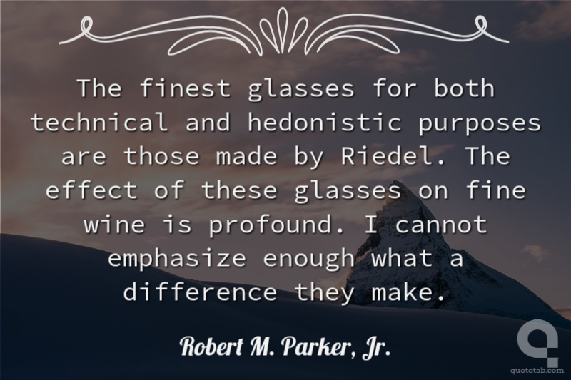 The finest glasses for both technical and hedonistic purposes are those made by Riedel. The effect of these glasses on fine wine is profound. I cannot emphasize enough what a difference they make.